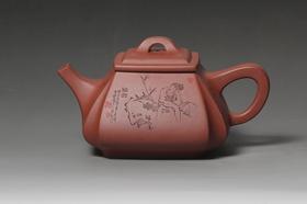 毛国强入室弟子黄云初全手工朱泥仕圆壶 编号33849 黄云初
