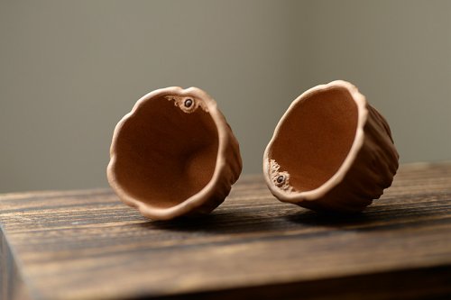 段泥做底粉朱泥浆 老味俱显 达摩杯与对茗杯 编号3471 朱牧清