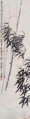 吴昌硕喜画竹,且突破古法,并以竹寄托节操之意。文人画家惯写松、竹、梅、菊、兰之属以寄怀抱,竹是常用题材,吴昌硕与之相同处是自然的,所与相异处是其“纵横破古法”。以书法写竹,有元人柯九思的“写竹干用篆法,枝用草法”,南唐后主的金错刀法画竹,倪云林画竹之“逸笔草草”等等,各有独到处。而吴昌硕画竹,多写风雨之竹,发挥“写”的线条意趣,充溢着浑厚的金石意味。