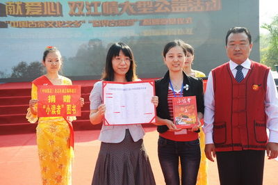 在这次公益活动中,中国爱心工作委员会向双 江县捐赠一所20万元的爱心小学。中国报道杂志社副总编辑赵珺代表中国报道杂志社向双江县小学捐赠一批“小读者”杂志等儿童读物。中国扶贫开发协会、中国 扶贫杂志社捐赠10万元人民币设立双江县贫困小学生中国扶贫助学金。中国国际文化传播中心捐赠文化部原副部长、中国国际文化传播中心原党组书记高占祥的作 品 “人生宝典”100套。双江德裕房地产开发有限公司捐赠25万元建希望小学。云南鸿如茶业有限公司董事长李兴华代表公司向双江县的100多所学校捐赠了 300台32寸彩色电视机。联合国副秘书长里德也专门为此次公益活动发来贺电。